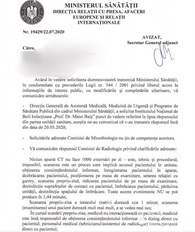 Însă, o sursă anonimă a trimis redacției Buletin de București un răspuns primit din parte Ministerului Sănătății care a desființat ambele cifre – sunt irealiste. Nu se poate efectua un CT într-un minut. Și instalarea pacientului în fața aparatului durează mai mult.