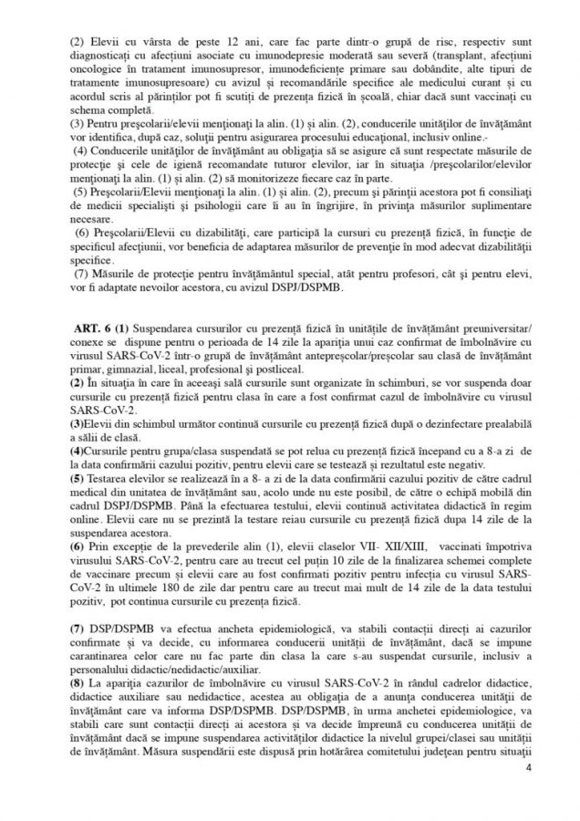 Școlile vor fi redeschise fizic pe 13 septembrie pentru localitățile care au în ultimele 14 zile sub 6 de infectări/1000 de locuitori, dacă această cifră este depășită cursurile vor fi mutate în mediul online.