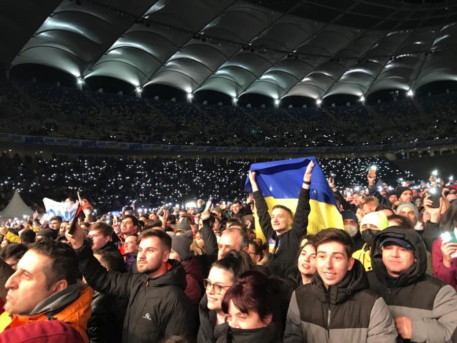 Steagurile României și al Ucrainei, dar și cele ale Uniunii Europene și ale inițiativei „We are one” au început să fluture pe Arena Națională încă dinainte ca cel mai lung concert caritabil din România să înceapă. Spectatorii, îmbrăcați mai mult sau mai puțin potrivit pentru o seară care anunța -5 grade Celsius și-au căutat cele mai bune locuri.
