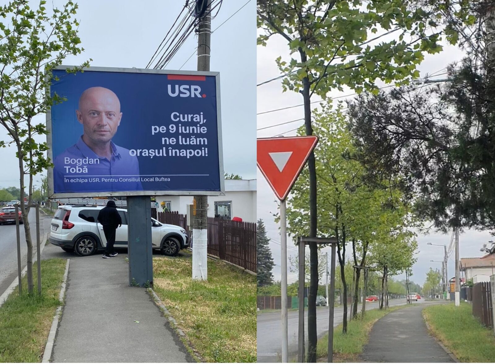 Două panouri publicitare din oraşul Buftea, județul Ilfov, pentru care USR a plătit ca să îşi expună reclama electorală au dispărut în mod misterios, peste noapte. Unul era montat stângaci, și „mușca” din trotuar, celălalt era într-un spaţiu verde.