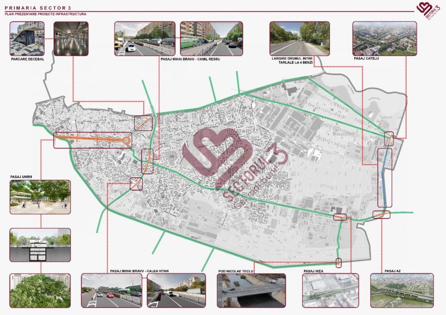 Primăria Sectorului 3 a anunțat intenția de a investi aproape jumătate de miliard de lei în proiecte destinate fluidizării traficului. Investiția cuprinde trei pasaje rutiere subterane, două pe șoseaua Mihai Bravu și unul la intersecția str. Gării Cățelu cu Șoseaua Industriilor. Două pasaje supraterane urmează să fie construite la intersecția bd. Theodor Pallady – str. Nicolae Teclu, respectiv la intersecția bd. Theodor Pallady cu str. Drumul între Tarlale. Un alt proiect este lărgirea străzii Drumul între tarlale de la două la 4 benzi pe sens.