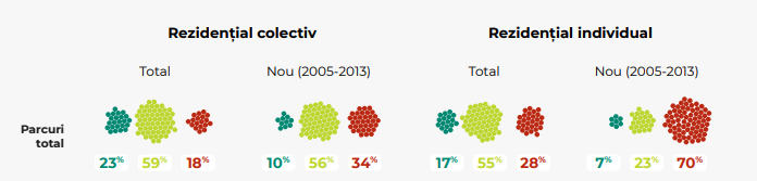 Din punct de vedere al accesibilității, 23,47% din spațiile rezidențiale colective și 16,57%