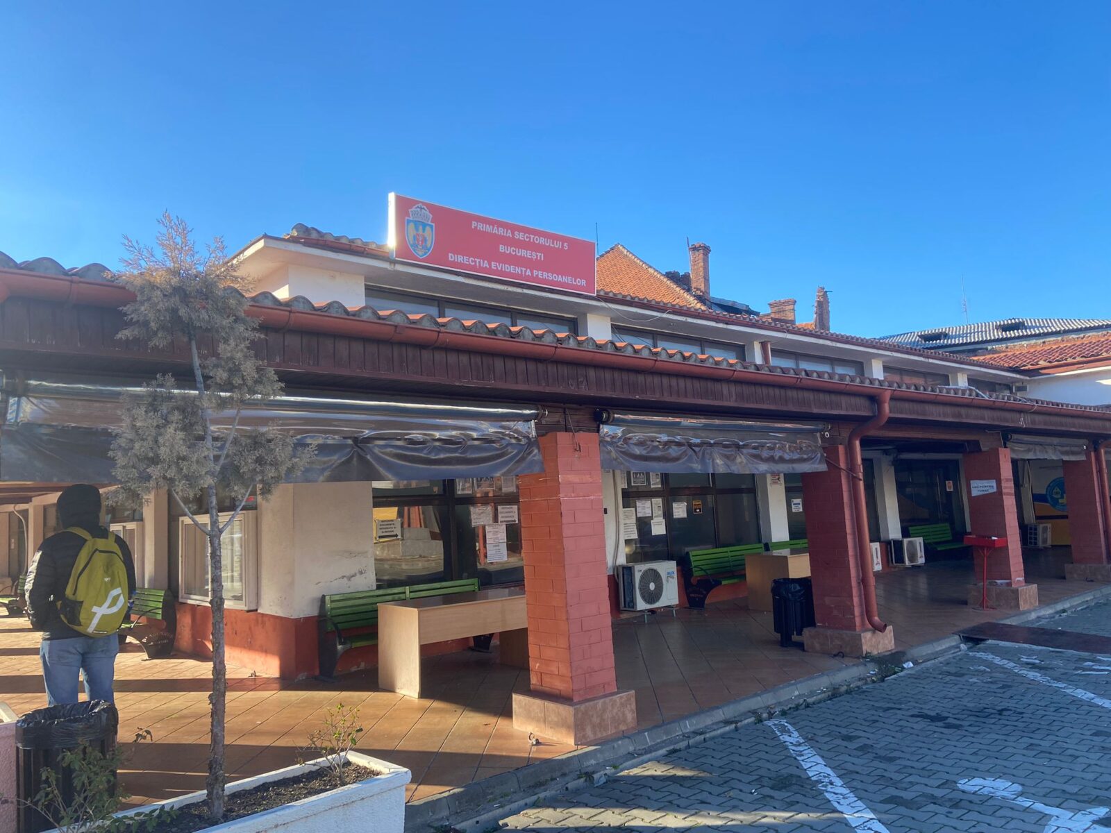 În Sectorul 5 al Capitalei, sediul Evidența Populației din Piața „George Coșbuc” părea destul de gol din afară. În această după-amiază, în jurul orei 15:00, maşinile din parcare erau singurul indiciu cum că acesta încă își desfășoară activitate.
