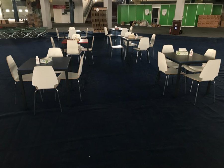 Atât în lateralul pavilionului central, cât și în spatele sălii de la parter se află alte câteva sute de paturi care așteaptă să fie montate în cazul în care situația o cere. Paturile ar urma să fie puse atât la parterul pavilionului – în puținii metri pătrați liberi-, cât și pe suprafața primului etaj, unde momentan este amenajat un loc de socializare.