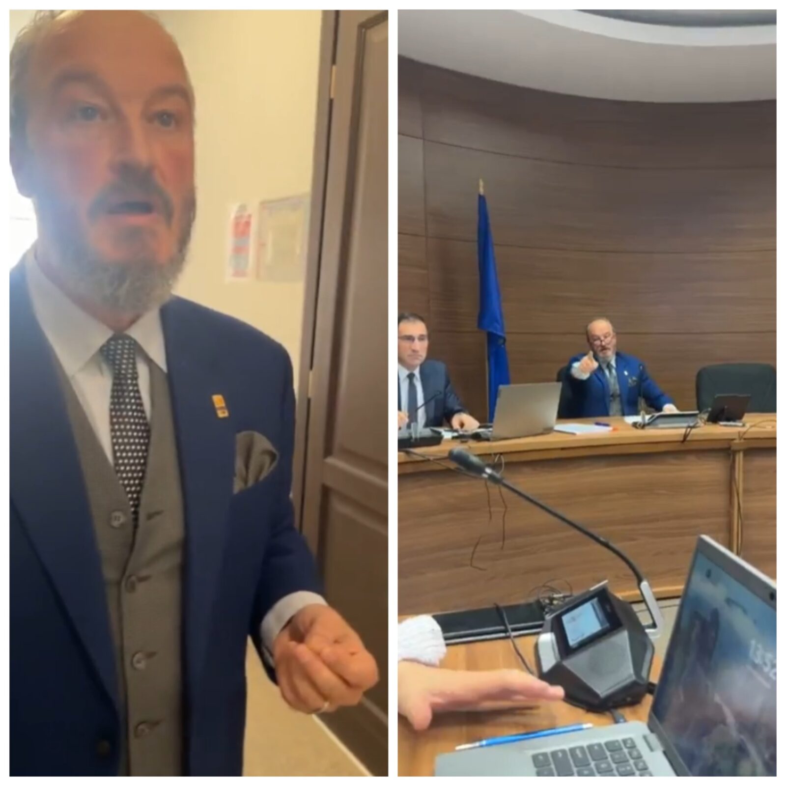 Pe hol s-a consumat al doilea episod al scandalului – după un schimb acid de replici, preşedintele de şedinţă i-a înşfăcat telefonul lui Judele, care transmitea live pe Facebook în acel moment şi i l-a aruncat de la etajul I.
