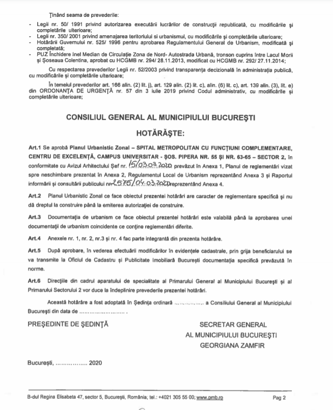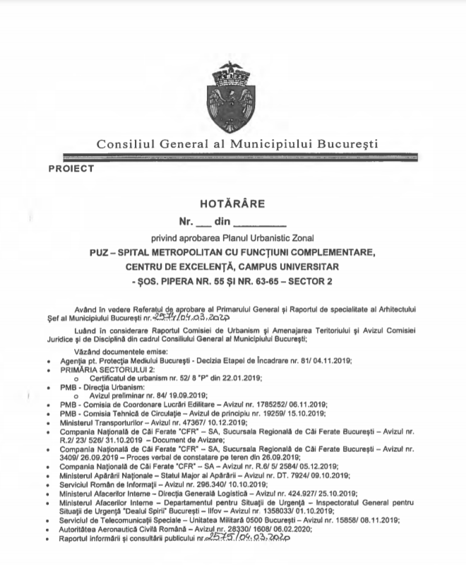 Din februarie până în iunie proiectul a stagnat, urmând să fie aprobat Planul Urbanistic Zonal (PUZ) în ședința Consiliului General din 18 iunie.
