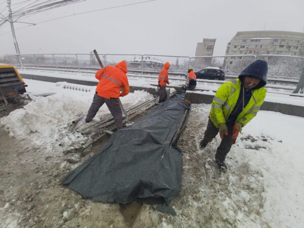 Lucrările la podul Grant continuă în ciuda stratului de zăpadă depus şi a temperaturilor scăzute – echipele de muncitori au deszăpezit zona şantierului...