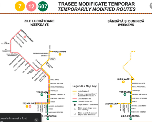 Începând de miercuri, 11octombrie, liniile de tramvai 7 și 12 vor funcționa pe trasee modificate. Pe tronsonul cuprins între terminalul „CFR Progresul” și intersecția Șos. Giurgiului/...