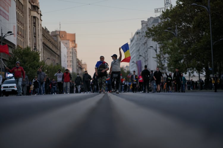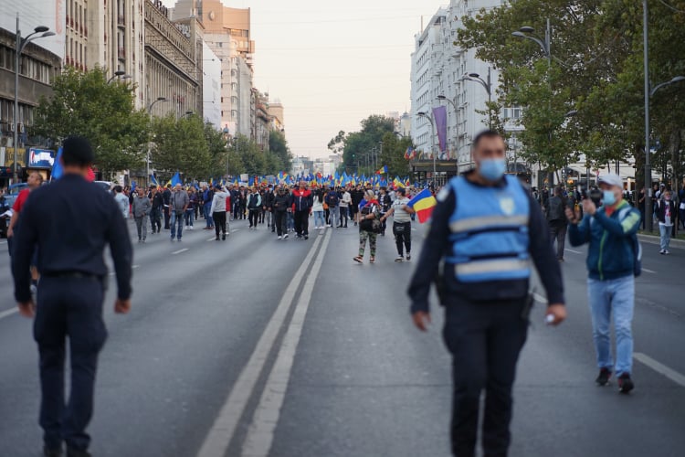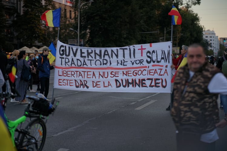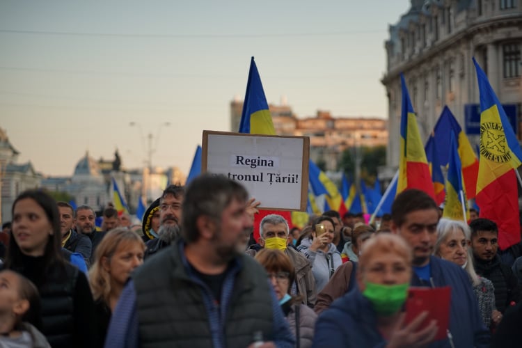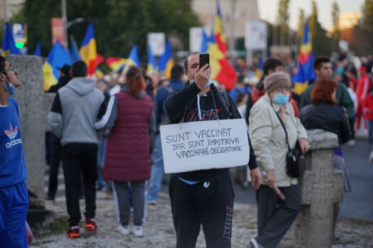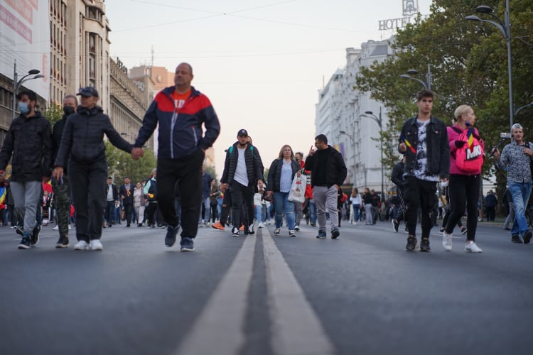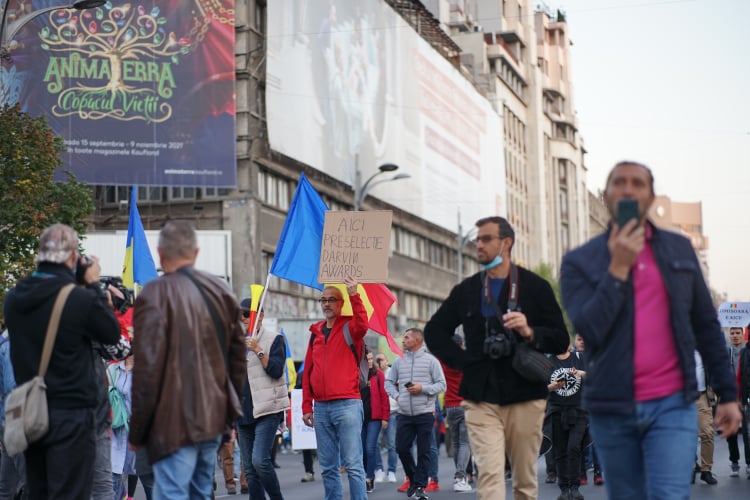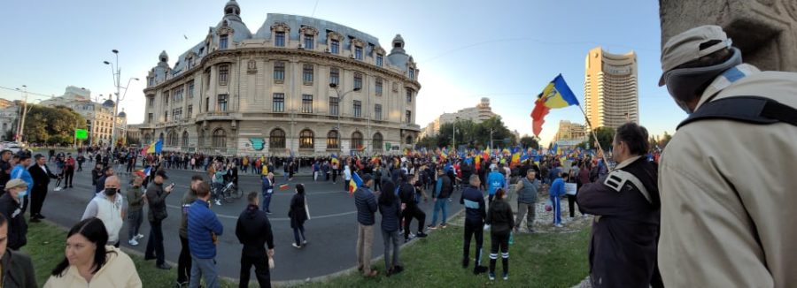 Două proteste au loc, în acest moment, în Capitală, la care participă peste 10.000 de persoane. Primul, organizat de AUR, a avut ca punct de plecare Piața Universității, iar coloana de participanți a plecat în marș spre Piața Victoriei. Acolo se desfășoară al doilea protest, organizat de mai multe asociații. Protestatarii cer ca vaccinarea să nu devină obligatorie și ca sistemul de Certificat Verde, care dovedește vaccinarea sau imunizarea post boală, să dispară.